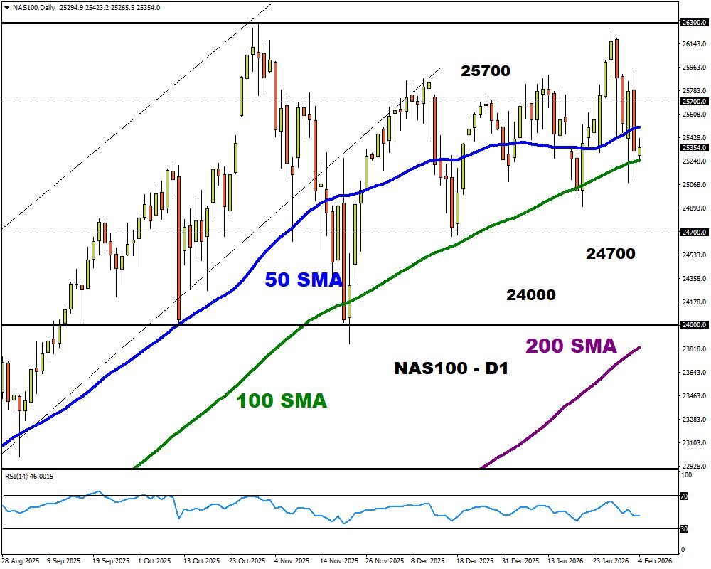 Considering how Alphabet and Amazon account for almost 20% of the Nasdaq 100, a solid set of earnings could spark a rally back toward 26,000.