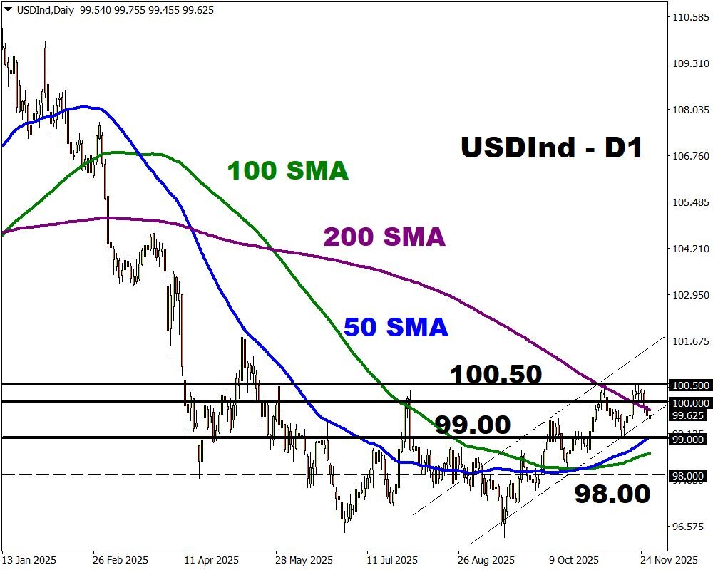 - The USDInd could weaken if peace plan hopes lift global risk sentiment and the euro.