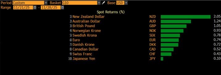 The greenback has been pressured by mounting Fed cut bets and growing optimism over a possible Ukraine-Russia peace deal.